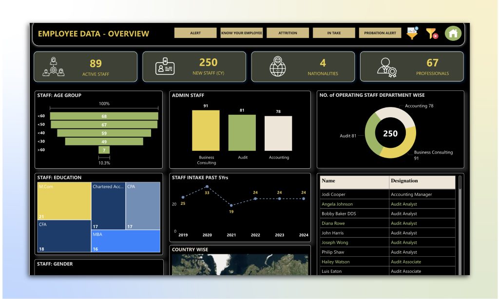 With dashboards custom-built for HR department, businesses can gain access to view employee details, performance, verifications, and much more.
